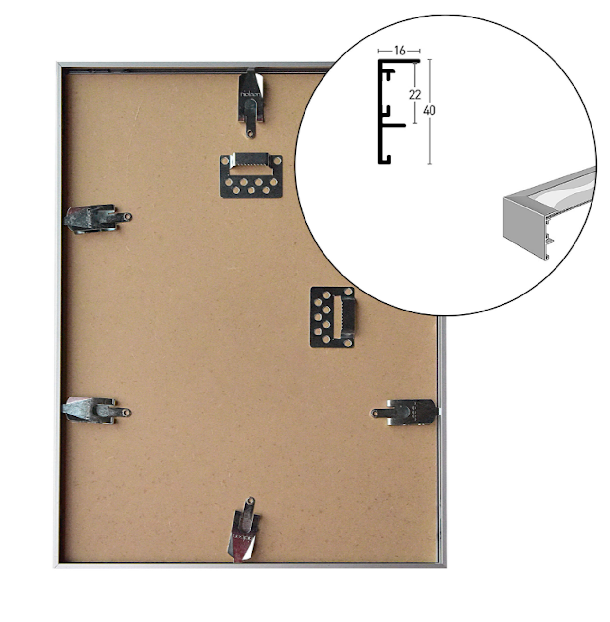 - Aluminium-Objektrahmen mit einem 16 mm breiten Profil - Made in Germany.