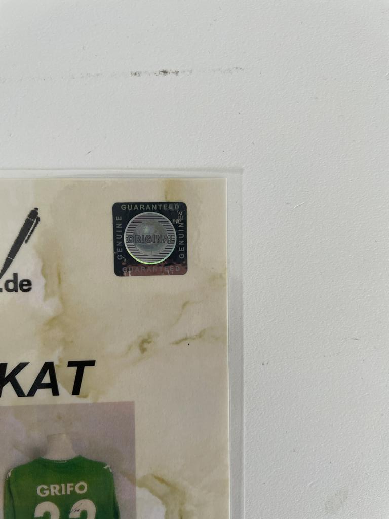 Hier erhalten Sie die Möglichkeit, ein von Vincenzo Grifo persönlich signiertes Borussia Mönchengladbach Trikot in der Größe 4XL zu erwerben. Das Trikot ist gebraucht, der Kragen ist etwas gelblich verfärbt (Siehe Bilder). Über die Echtheit der Unterschrift erhalten Sie ein Echtheitszertifikat mit lebenslanger Geld-Zurück-Garantie. Der auf dem Trikot befindliche Hologrammaufkleber (Siehe Bilder) stellt die Verbindung zum Zertifikat dar.