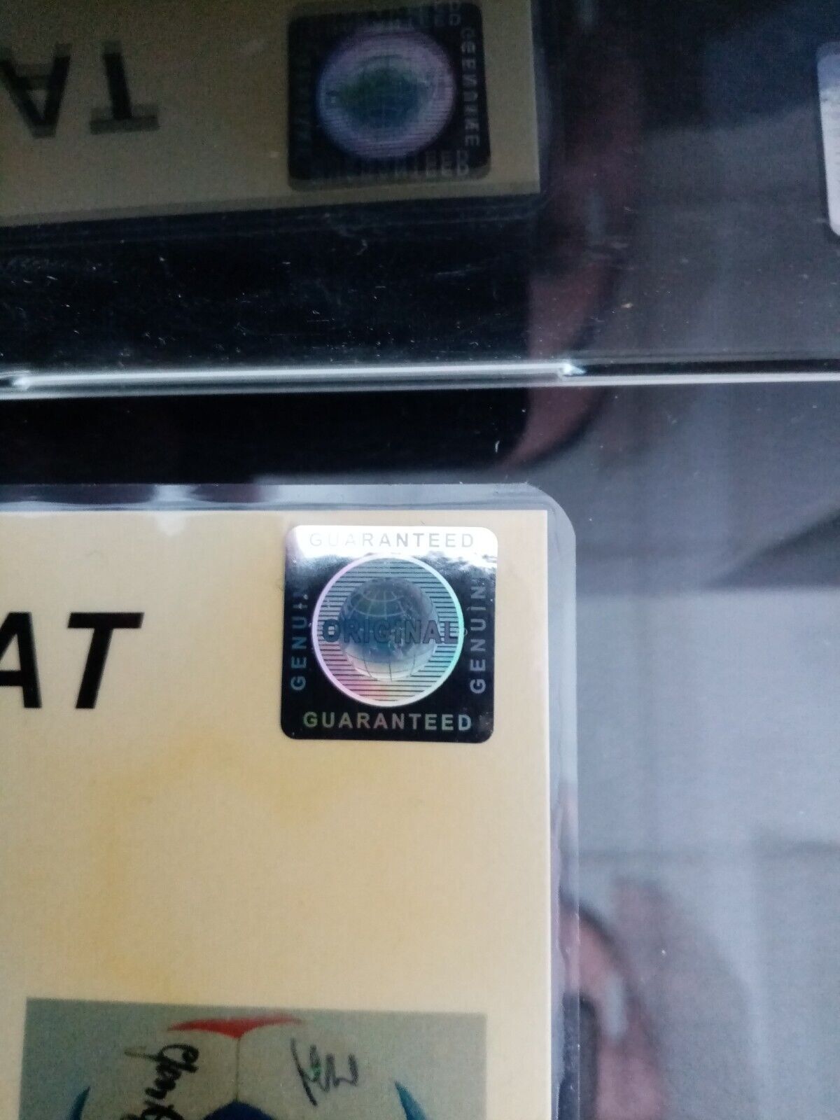 Der Ball befindet sich in einem sehr guten Zustand. Er ist NICHT aufgepumpt (Nicht sicher ob er noch aufgepumpt werden kann). Der Ball befindet sich in einer Acryl-Vitrine mit den Maßen 30 x 30 x 30 cm. Die Vitrine ist neu und wird Ihnen zerlegt zugestellt (Anleitung Siehe Bilder). Der Teppich in Rasenoptik, 3 Hologrammaufkleber (Diesen können Sie je nach Wunsch an der Vitrine positionieren. Er stellt die Verbindung zum Zertifikat dar) und 2 Powerstripes zum befestigen des Zertifikats (Mit lebenslanger Geld-Zurück-Garantie) werden ebenfalls mitgeliefert.