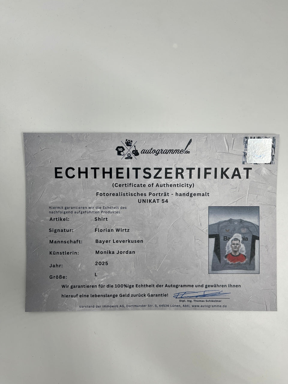 Leverkusen Shirt, persönlich signiert von Florian Wirtz mit Porträt!