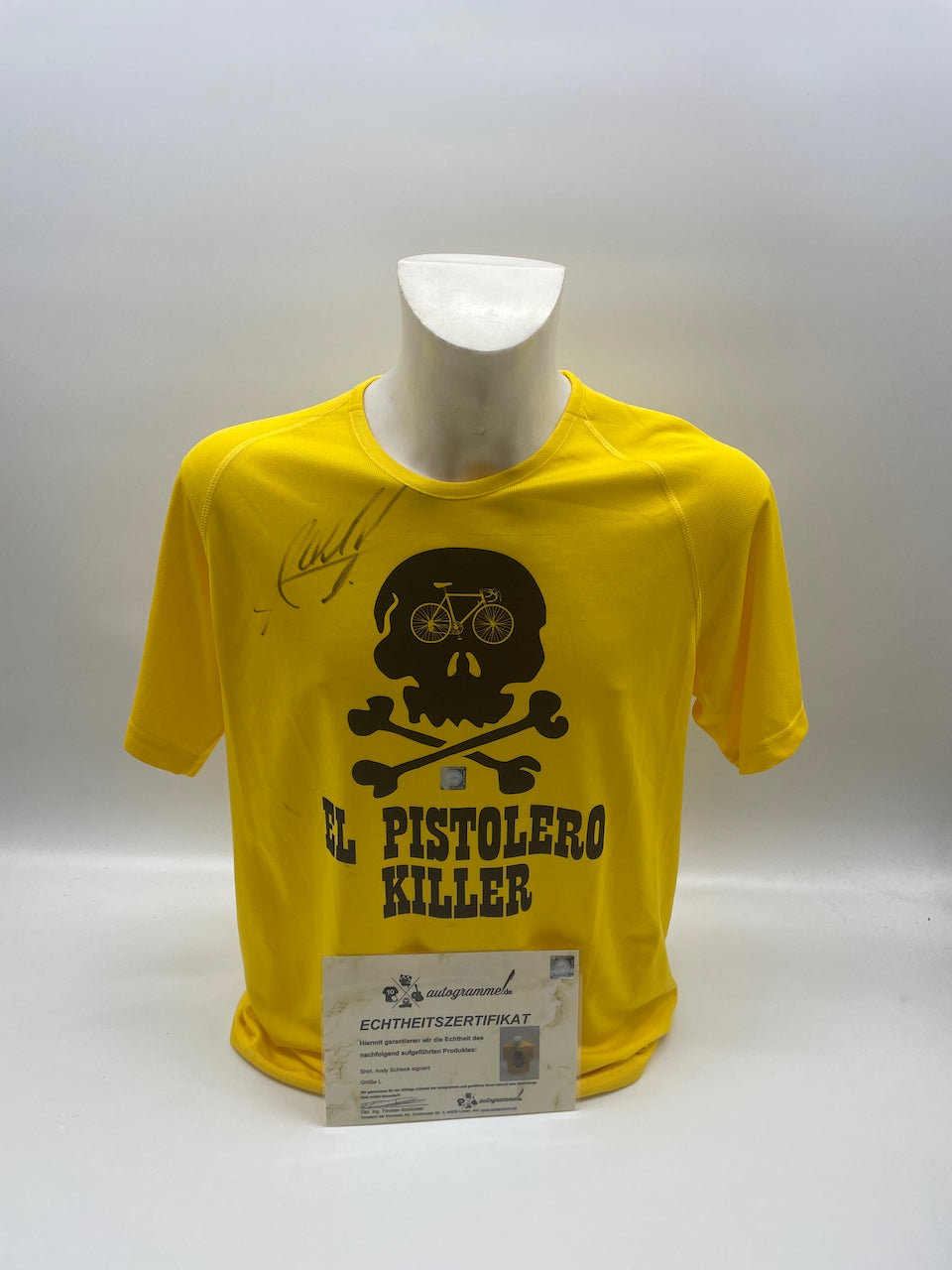 Hier erhalten Sie die Möglichkeit, ein von Andy Schleck persönlich signiertes Shirt in der Größe L zu erwerben. Andy Schleck hat 2010 die Tour de France gewonnen. Das Shirt ist ungetragen, lediglich das Etikett ist nicht vorhanden. Über die Echtheit der Unterschrift erhalten Sie ein Echtheitszertifikat mit lebenslanger Geld-Zurück-Garantie! Der auf dem Trikot befindliche Hologrammaufkleber (Siehe Bilder) stellt die Verbindung zum Zertifikat dar.