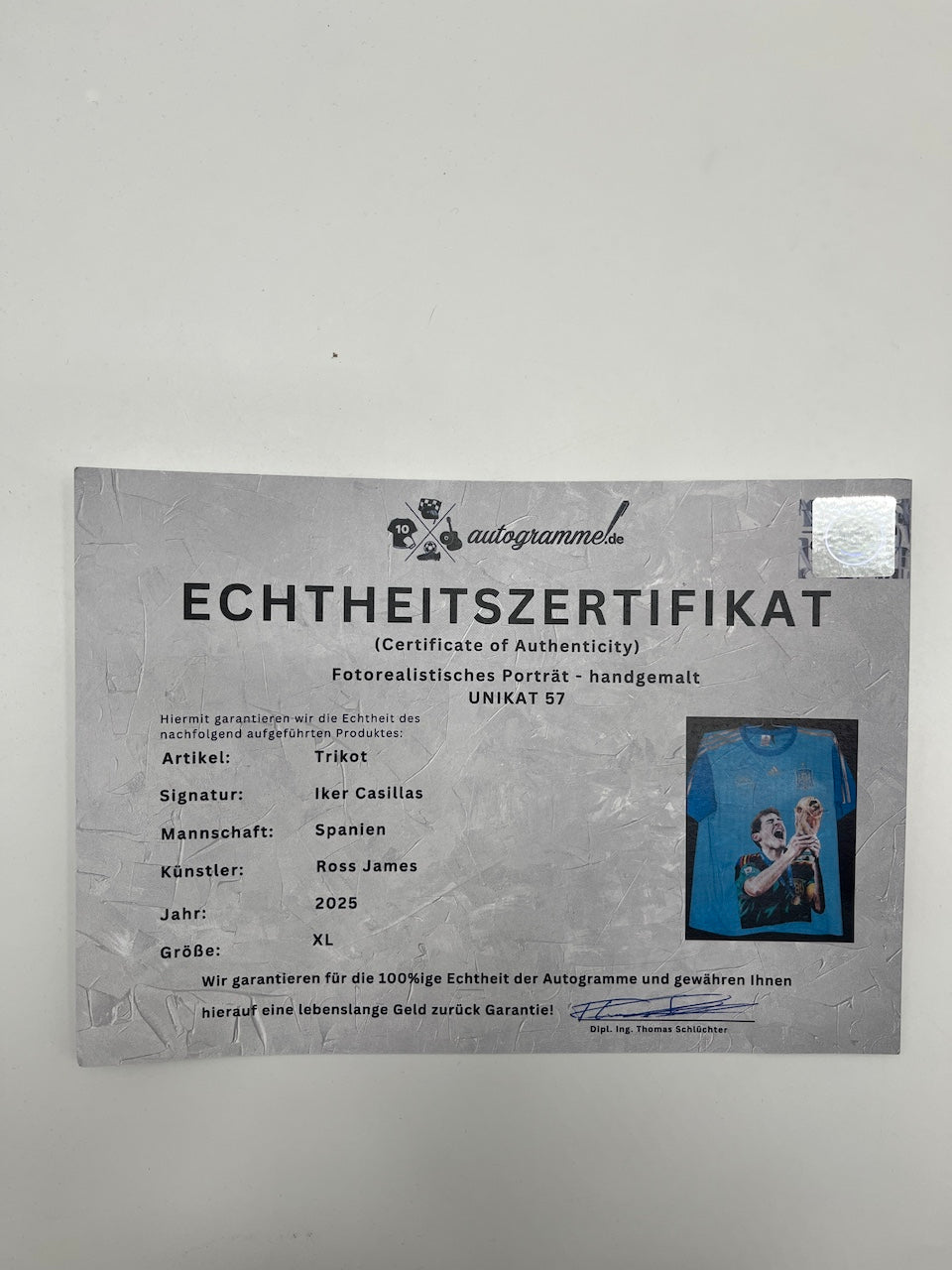 Spanien Trikot Portrait Iker Casillas handgemalt und signiert Adidas XL