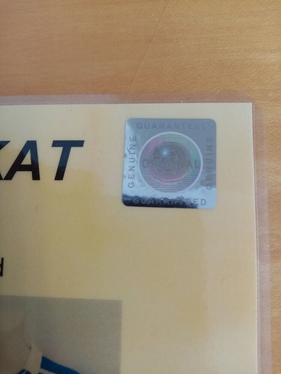 Hier erhalten Sie die Möglichkeit, ein von Spielern der Mannschaft der Saison 2013/2014 persönlich signiertes 1899 Hoffenheim Trikot in der Größe 3XL zu erwerben. Das Trikot ist ungetragen, lediglich das Etikett ist nicht vorhanden. Über die Echtheit der Unterschriften erhalten Sie ein Echtheitszertifikat mit lebenslanger Geld-Zurück-Garantie. Der auf dem Trikot befindliche Hologrammaufkleber (Siehe Bilder) stellt die Verbindung zum Zertifikat dar.