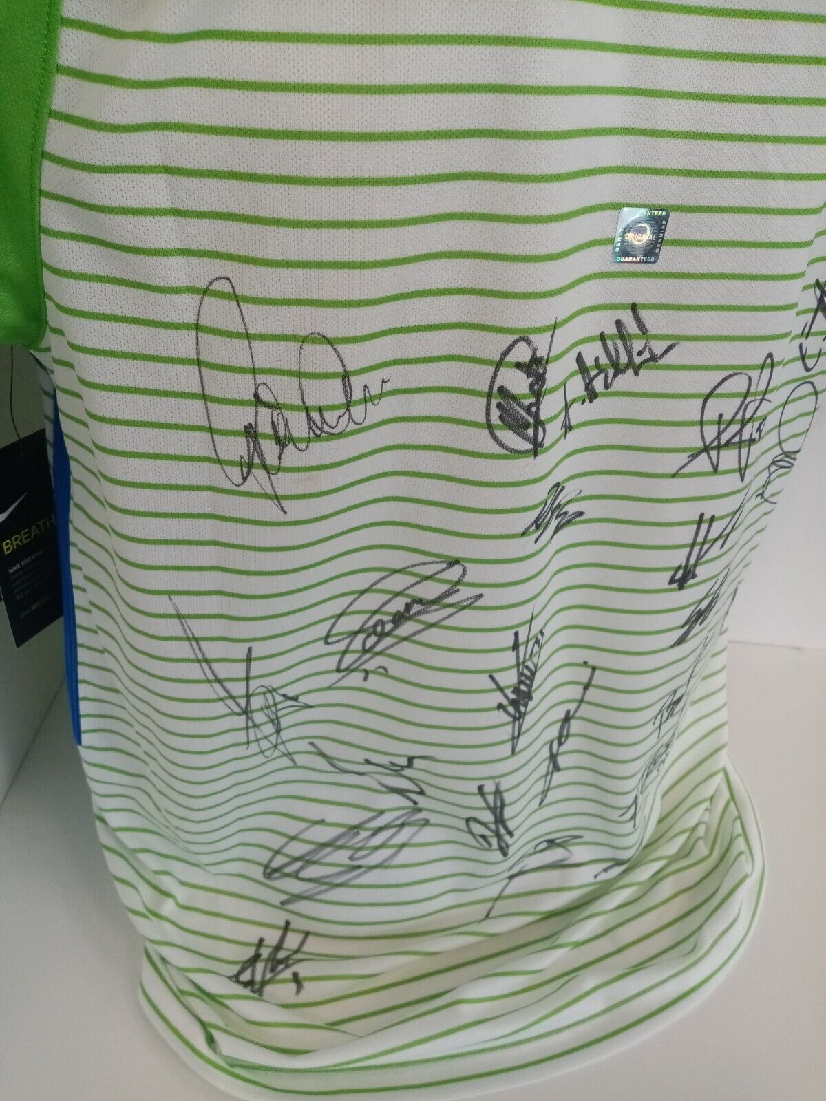 Hier erhalten Sie die Möglichkeit, ein von Spielern der Mannschaft der Saison 2017/2018 persönlich signiertes VFL Wolfsburg Trikot in der Größe L zu erwerben. Das Trikot ist ungetragen, das Etikett ist vorhanden. Über die Echtheit der Unterschriften erhalten Sie ein Echtheitszertifikat mit lebenslanger Geld-Zurück-Garantie. Der auf dem Trikot befindliche Hologrammaufkleber (Siehe Bilder) stellt die Verbindung zum Zertifikat dar.